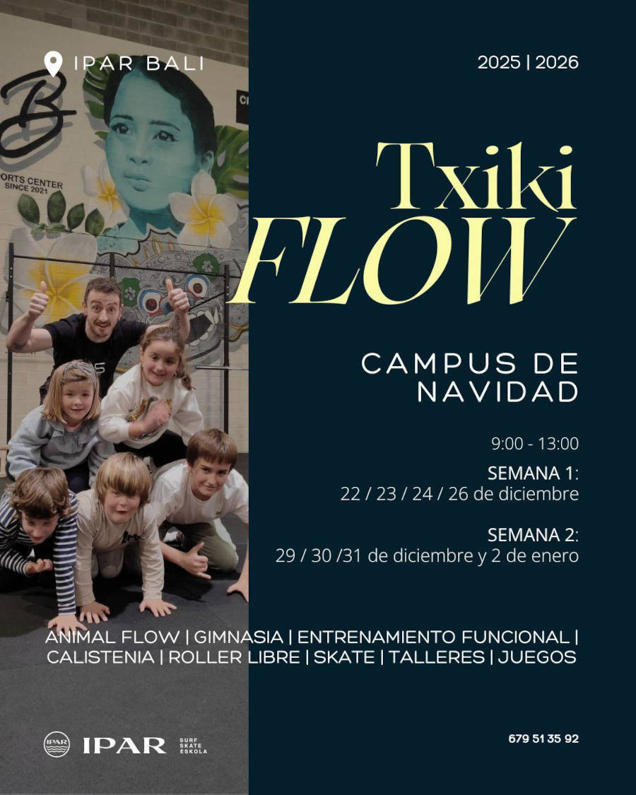 Las actividades se desarrollarán los días: 22, 23, 24, 26 (SEMANA 1) y 29, 30, 31 de diciembre y el 2 de enero (SEMANA 2) de 2026, serán de meñana de 9:00 a 13:00 horas en Ipar y en Bali ¡inscríbete antes de que se agoten las plazas!